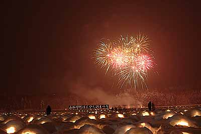 「ほんやら洞」とは、小さな「かまくら」のことです。大小合わせて約5000個のほんやら洞が雪原に並び、キャンドルの灯りが優しく浮かび上がります。