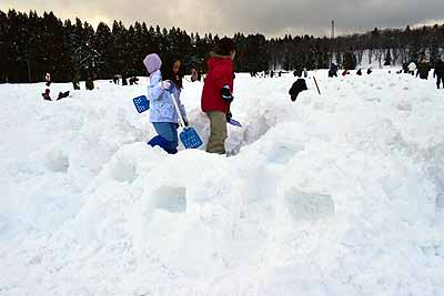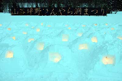 「ほんやら洞」とは、小さな「かまくら」のことです。大小合わせて約5000個のほんやら洞が雪原に並び、キャンドルの灯りが優しく浮かび上がります。